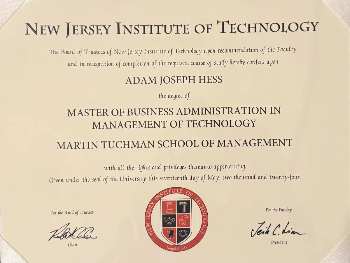 I hold an MBA in Management of Technology from the New Jersey Institute of Technology.